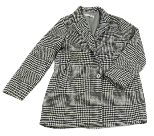 Černo-bílý kostkovaný vzorovaný vlněný podšitý kabát s límečkem SHEIN
