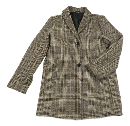 Hnědo-modrý kostkovaný vlněný podšitý kabát Next