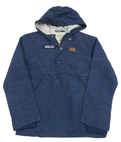 Tmavomodrá šusťáková jarní bunda s nášivkou a kapucí