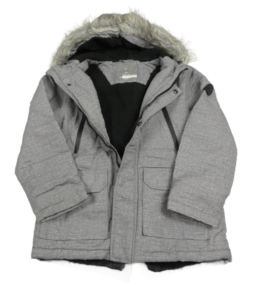 Šedá melírovaná šusťáková zimní bunda s kapucí s kožešinou Primark