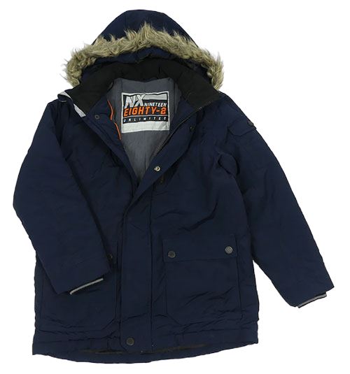 Tmavomodrá šusťáková zimní bunda s kapucí Next
