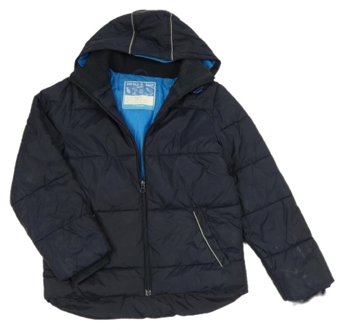 Tmavomodrá šusťáková zateplená bunda s kapucí