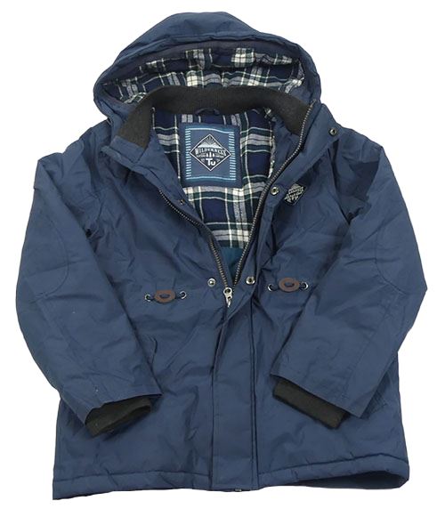 Tmavomodrá šusťáková zimní bunda s nášivkou a kapucí Tu