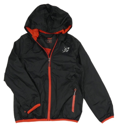Černá funkční šusťáková podzimní bunda s raketou a kapucí Crivit