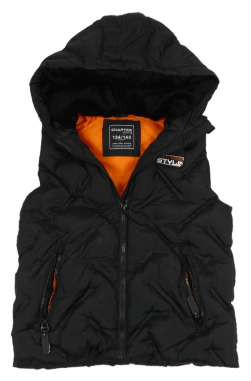 Černá šusťáková prošívaná zateplená vesta s nášivkou a kapucí Chapter young