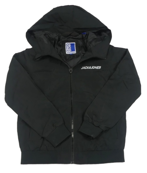 Černý šusťákový podzimní bomber s logem a kapucí JACK&JONES