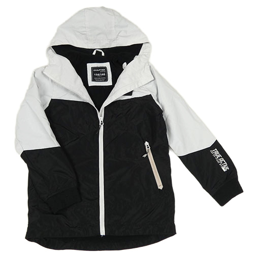 Černo-bílá šusťáková podzimní bunda s nášivkou a kapucí Chapter young