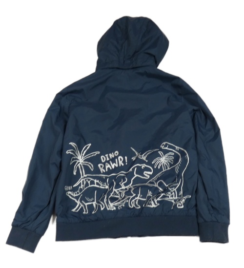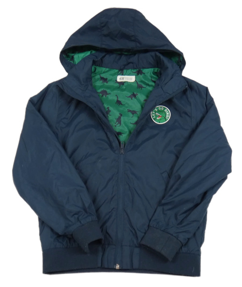 Tmavomodrá šusťáková podzimní bunda s dinosaury a odepínací kapucí H&M
