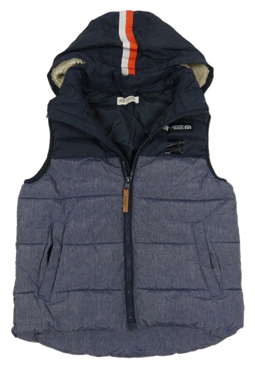 Tmavomodro-melírovaná šusťáková zateplená vesta s kapucí H&M