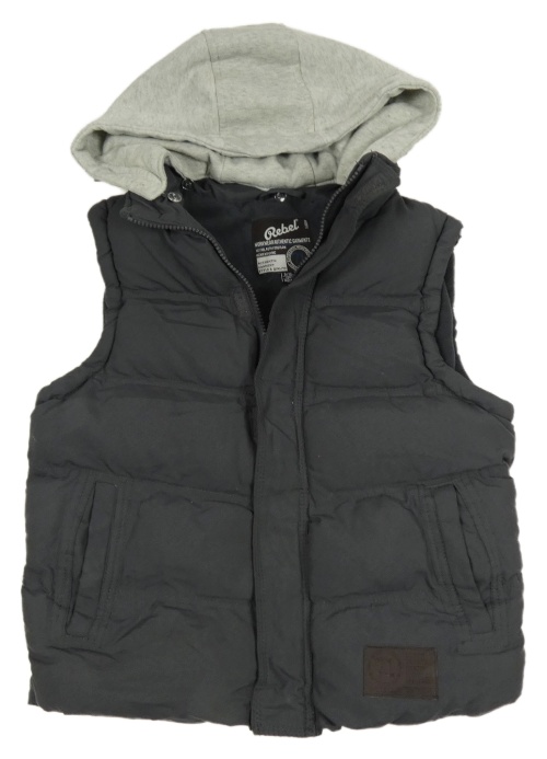 Nové- Tmavošedá šusťáková prošívaná zateplená vesta s odepínací kapucí Rebel