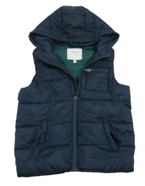 Tmavomodrá šusťáková zateplená vesta s kapucí