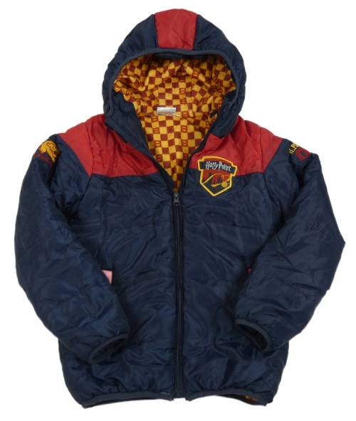 Tmavomodro-červená šusťáková zimní bunda s nášivkou a kapucí - Harry Potter