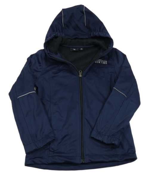 Tmavomodrá softshellová bunda s nápisem a kapucí Crane