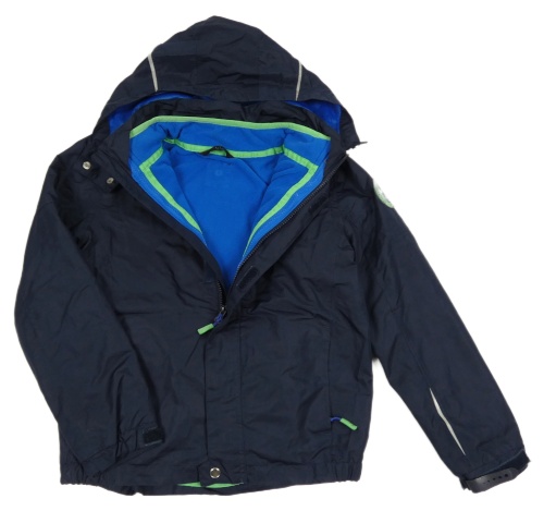 3v1 - Tmavomodrá kostkovaná šusťáková celoroční bunda s nášivkou a odepínací kapucí TCM