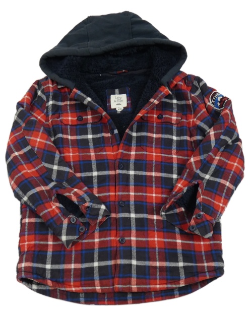 Červeno-tmavomodro-bílá kostkovaná flanelová zateplená košilová bunda s kapucí Lily & Dan