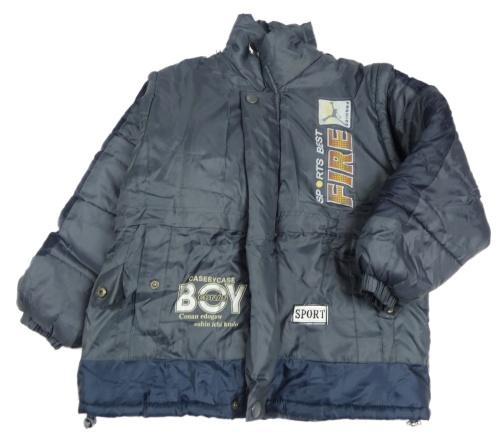 Šedo-tmavomodrá šusťáková zimní bunda s odepínacími rukávy
