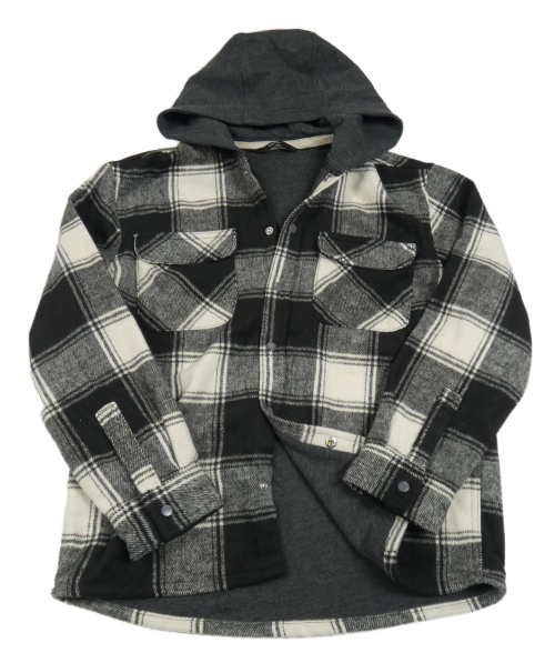 Černo-šedo-smetanová kostkovaná flaušová podšitá košilová bunda s kapucí George