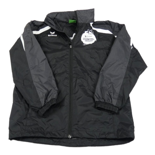Černo-šedo-bílá šusťáková sportovní bunda s potiskem a kapucí Erima