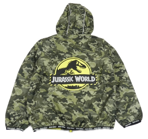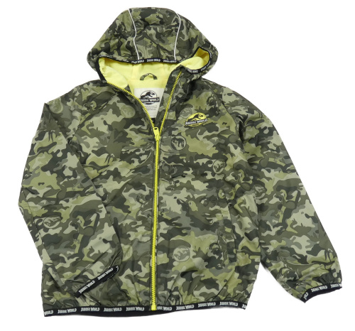 Khaki army šusťáková jarní bunda s dinem a kapucí - Jurský svět