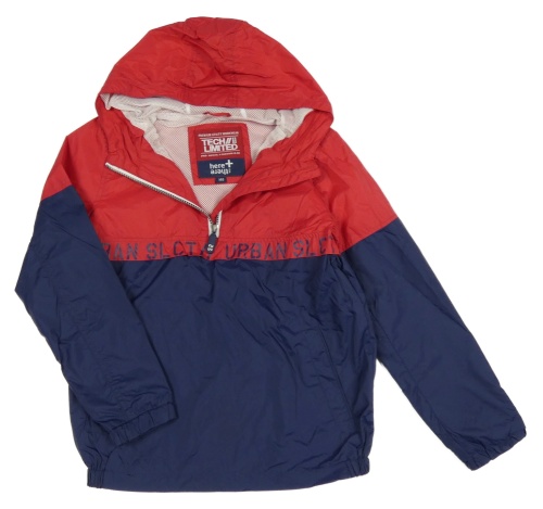 Červeno-tmavomodrá šusťáková jarní bunda s kapucí C&A