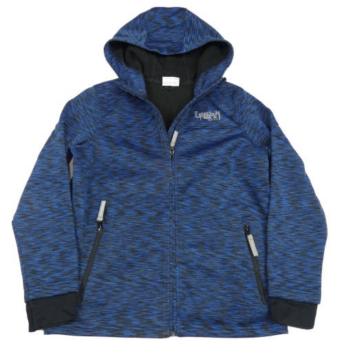 Modro-černá melírovaná softshellová bunda s nápisem a kapucí YIGGA
