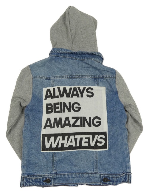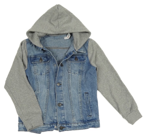 Modrá riflová bunda s teplákovými rukávy a kapucí Minoti