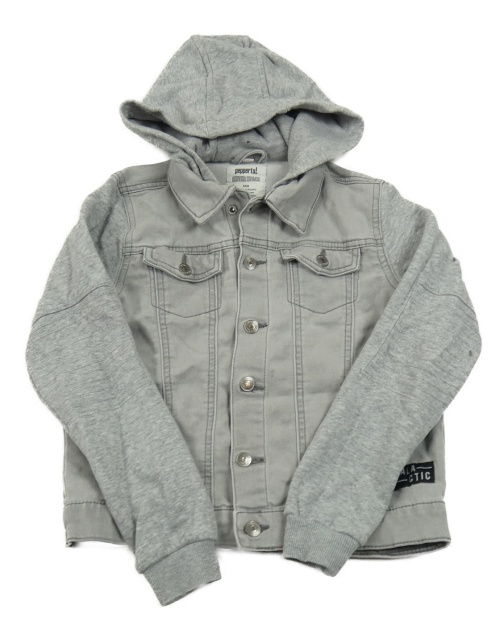 Šedá riflová bunda s teplákovými rukávy a kapucí Pepperts