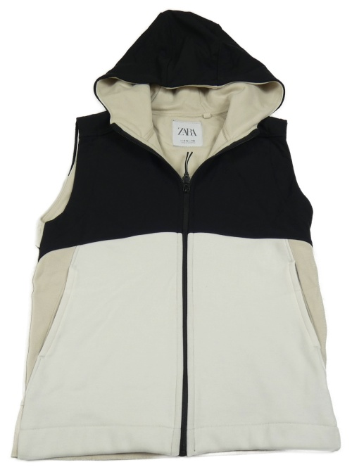 Černo-smetanová softshellovo-tepláková vesta s kapucí Zara