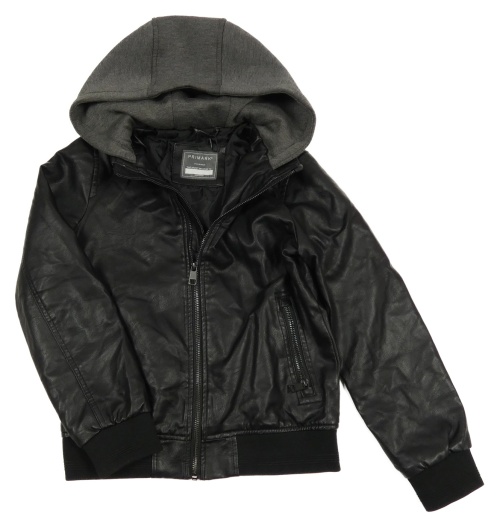Černá koženková jarní bunda s kapucí Primark