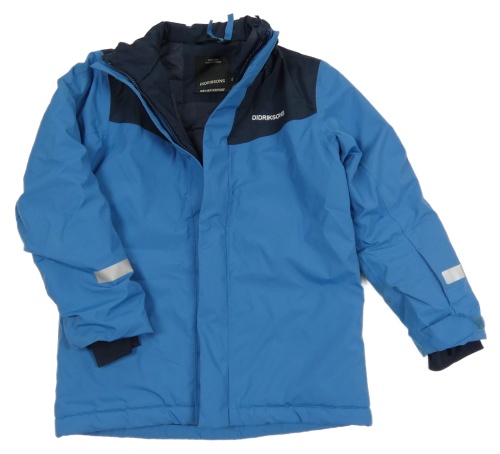 Modro-tmavomodrá šusťáková zimní bunda s nápisem