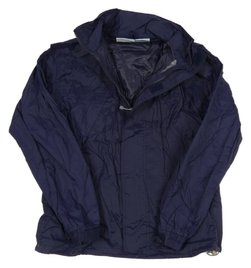 Tmavomodrá šusťáková nepromokavá bunda s ukrývací kapucí