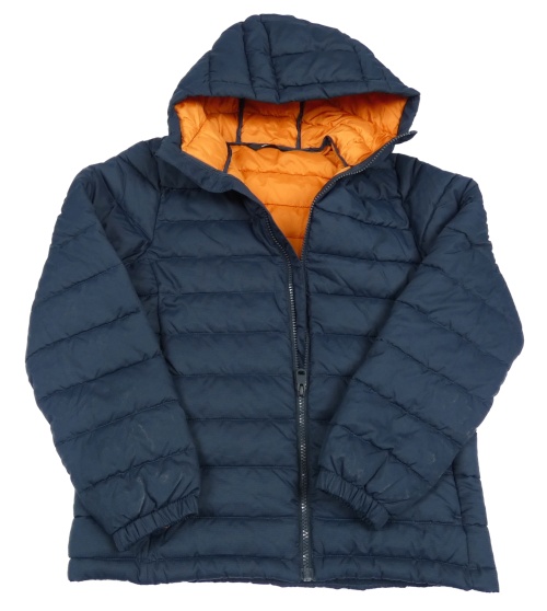Tmavomodrá šusťáková prošívaná zateplená bunda s kapucí Next