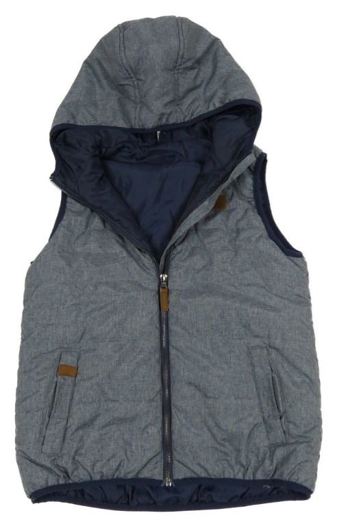 Tmavomodrá melírovaná šusťáková zateplená vesta s kapucí Yigga