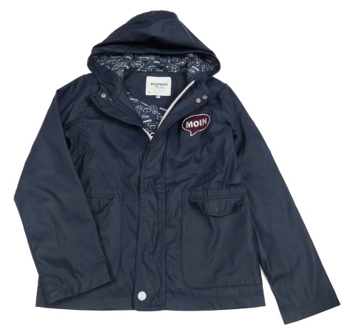 Tmavomodrá nepromokavá jarní bunda s nášivkou a kapucí POCOPIANO