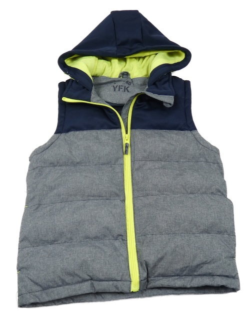 Tmavomodro-šedá šusťákovo/softshellová zateplená vesta s kapucí Y.F.K.
