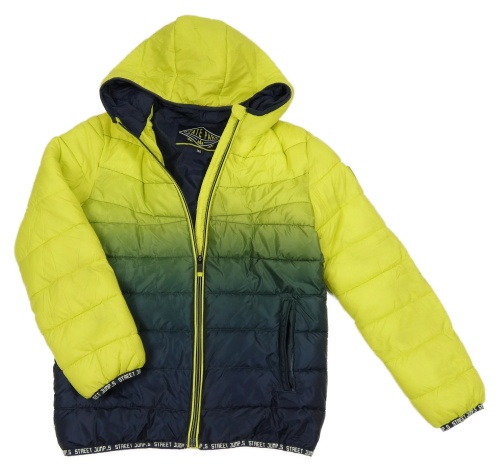 Citronovo-tmavomodrá šusťáková prošívaná zateplená bunda s kapucí C&A