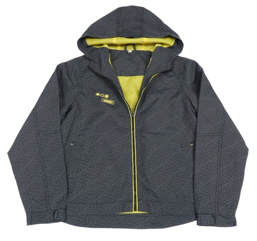 Tmavošedá vzorovaná šusťáková jarní bunda s kapucí