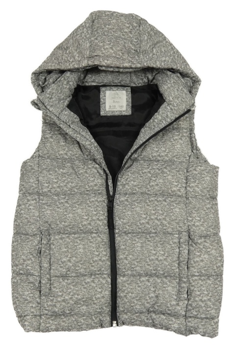 Šedá melírovaná šusťáková zateplená vesta s kapucí