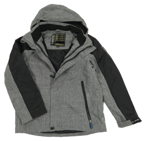 Šedo-černá šusťáková zimní bunda s nápisem a odepínací kapucí C&A