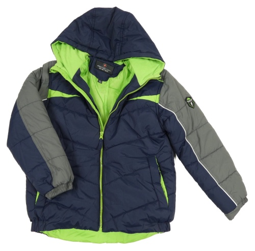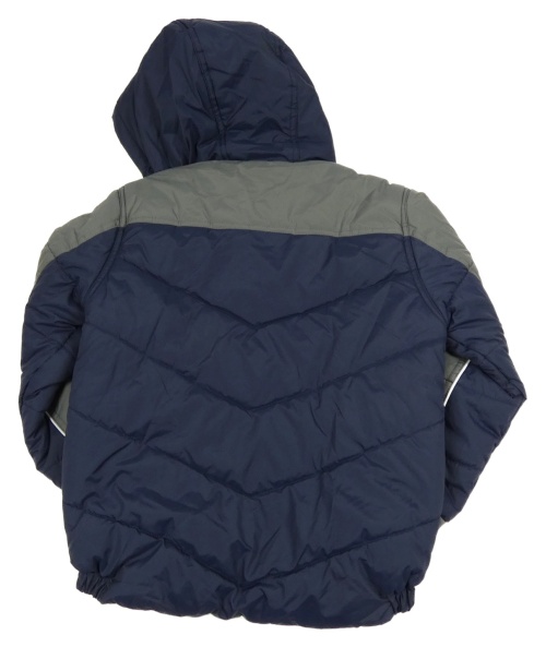 Tmavomodro-šedá šusťáková zimní bunda s kapucí