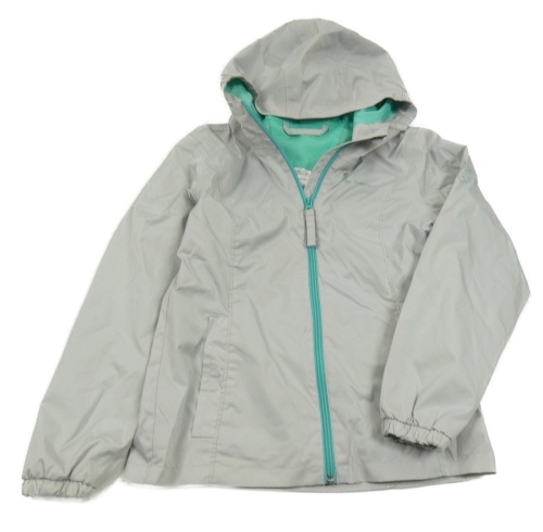 Světlešedá kostkovaná šusťáková funkční jarní bunda s logem a kapucí Quechua
