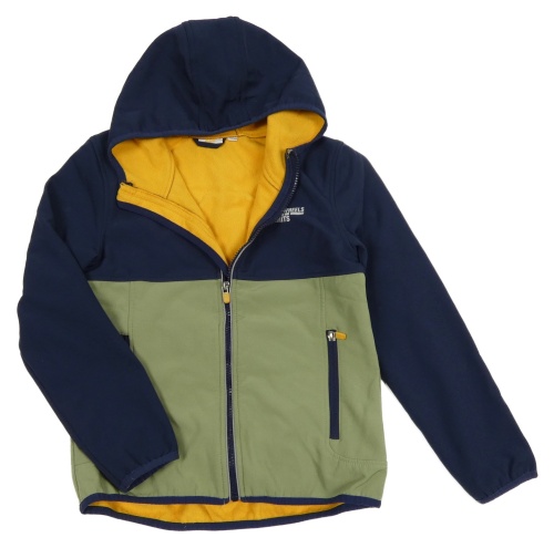 Tmavomodro-khaki softshellová bunda s nápisem a kapucí Kids