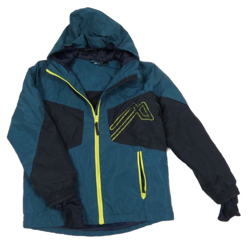 Petrolejovo-černá šusťáková funkční zimní lyžařská bunda s kapucí crivit