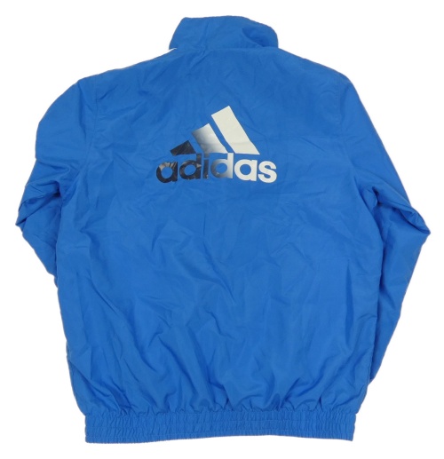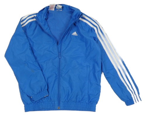 Modrá šusťáková sportovní funkční bunda s pruhy a logem Adidas