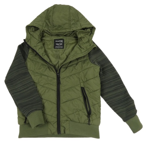 Khaki-černá šusťáková zateplená bunda s teplákovými rukávy a kapucí Chapter young