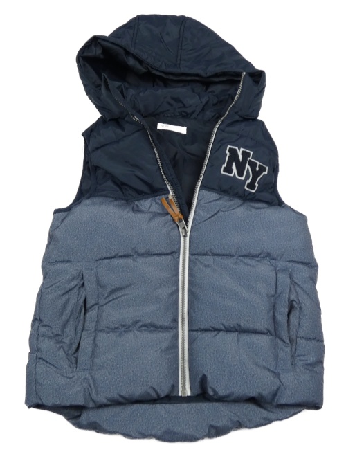 Tmavomodro-modrá šusťáková zateplená vesta s písmeny a kapucí H&M