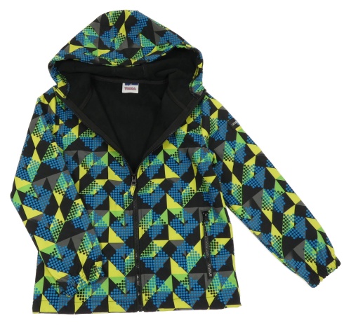 Černo-zeleno-žlutá vzorovaná softshellová bunda s kapucí Yigga