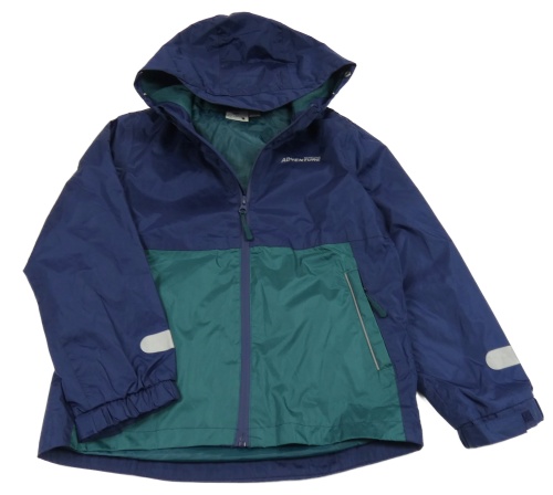 Tmavomodro-zelená šusťáková jarní funkční bunda s nápisem a kapucí Crane