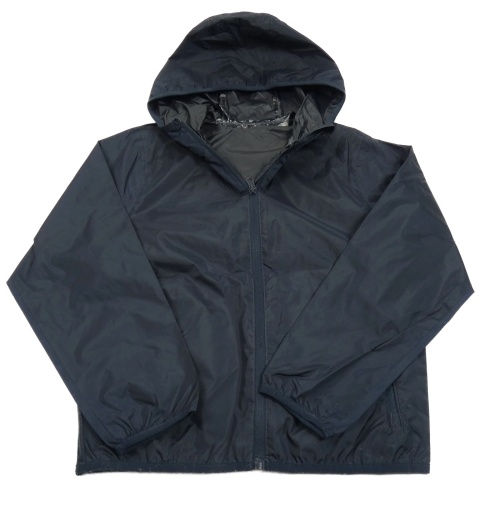 Tmavomodrá šusťáková nepromokavá bunda s kapucí
