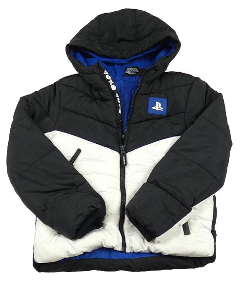 Černo-bílá šusťáková zimní bunda s nášivkou a kapucí - PlayStation Primark